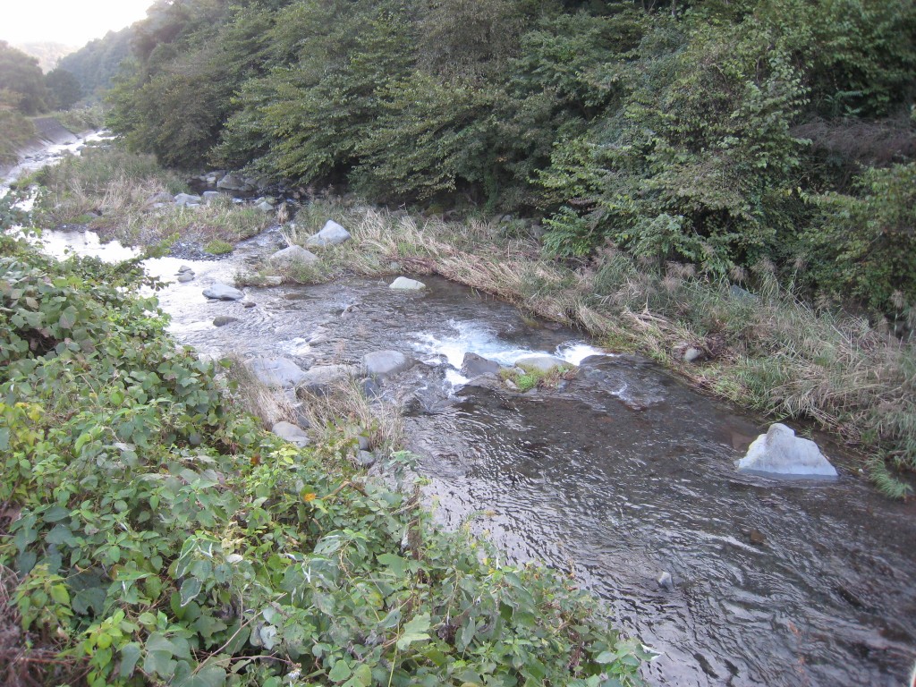 「出口」階段からの進入はできません。 道がなく・ボサもありますので、ウェーダー必須で す。
