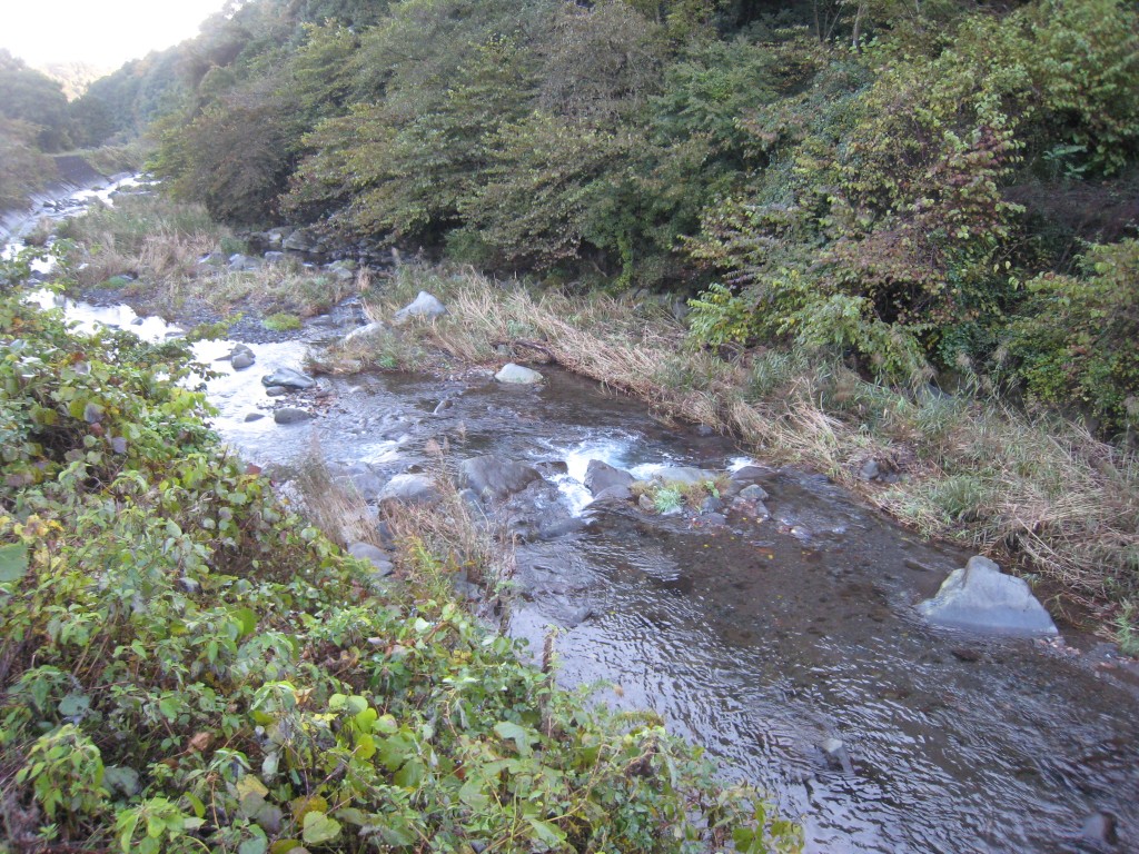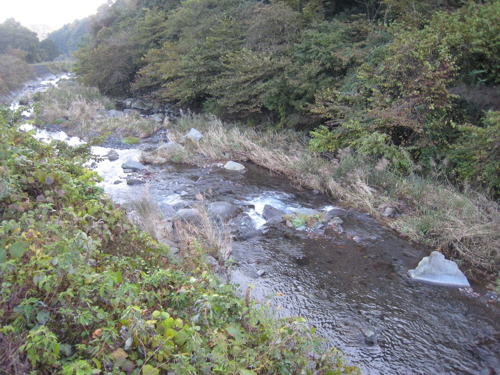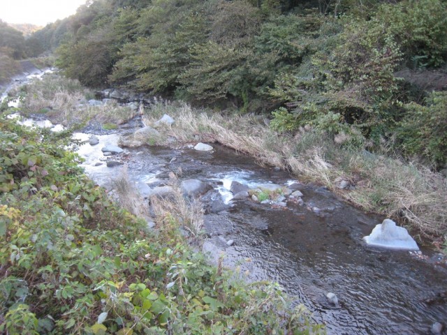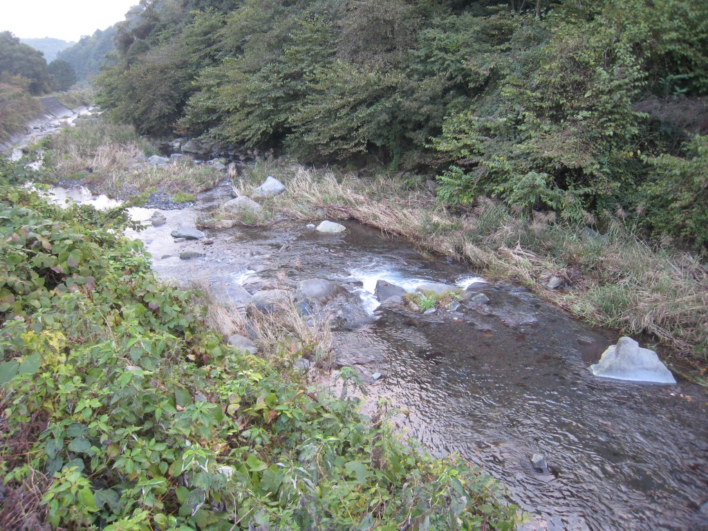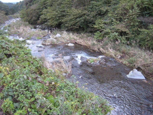 「出口」階段からの進入はできません。 道がなく・ボサもありますので、ウェーダー必須で す。